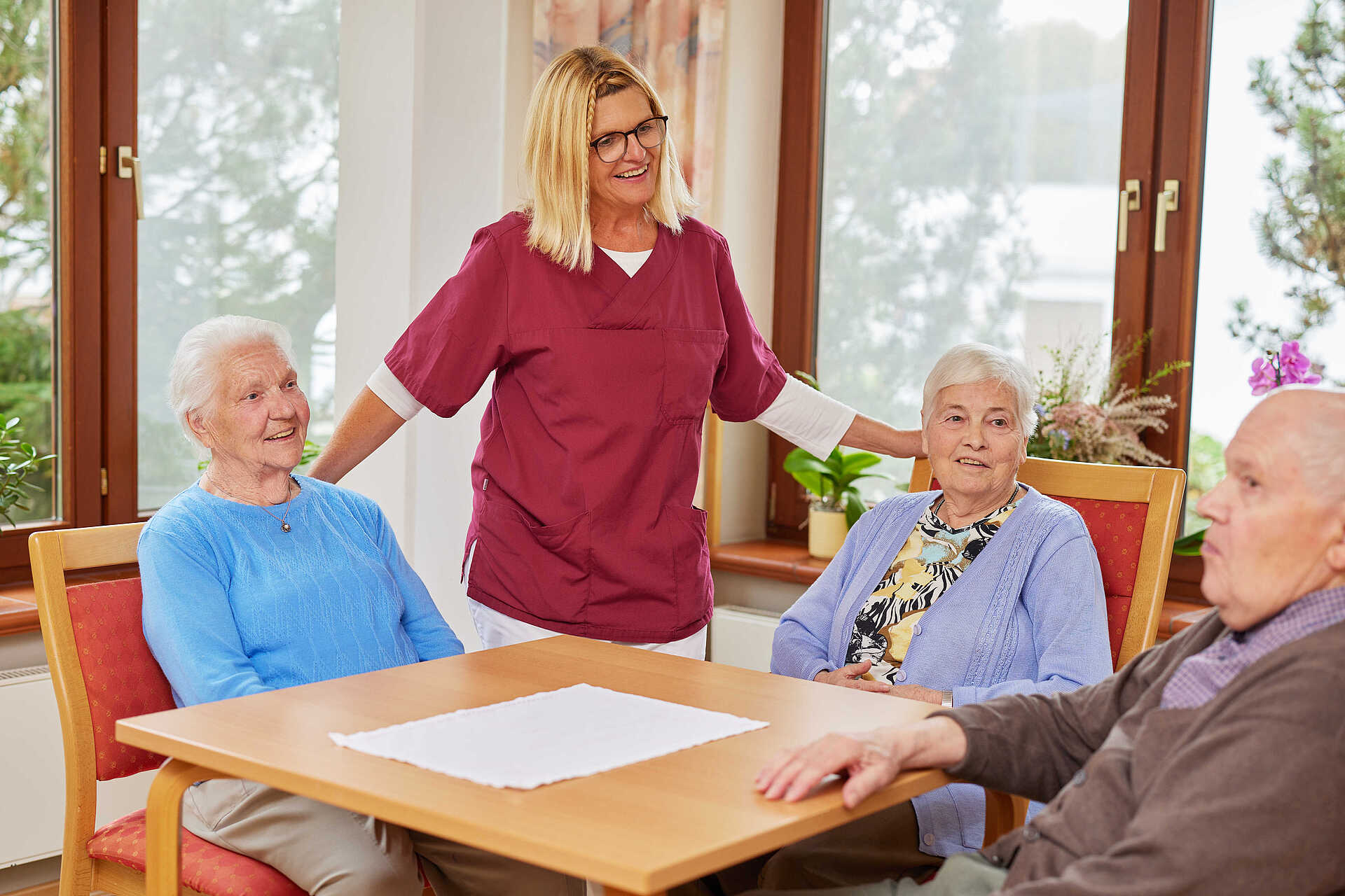 Unsere Pflegezimmer haben einen wirklich großzügigen Grundriss und sind mit hochwertigen Möbeln und Pflegebetten ausgestattet. Dazu kommen freundliche und helle Gemeinschaftsräume, die die Geselligkeit fördern. Das Herz unseres Hauses ist der große Speise- und Veranstaltungsraum, von welchem Sie einen Weitblick über den Garten genießen. Bei angenehmem Wetter lädt die Terrasse zum Verweilen und Zusammensein ein. 1991 erbaut und 2021 modernisiert, wartet ein Wohnpflegeheim mit schöner Atmosphäre auf Sie.